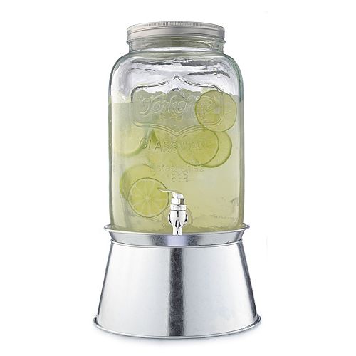 Circleware yorkshire mason jar beverage dispenser goes great with any kitchen decor and serveware easy to clean kitchen dispenser read more. Unlike regular beverage dispensers made of plastic, glass material just adds that little bit of extra aesthetic beauty that can sometimes be priceless. Dispense your favorite drinks such as iced tea, lemonade, orange, soda, etc. Also included is a faux slate name plate with chalk to personalize. Sweetened beverages may be subject to sweetened beverage tax recovery fee in certain locations.